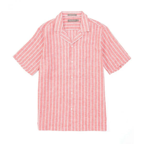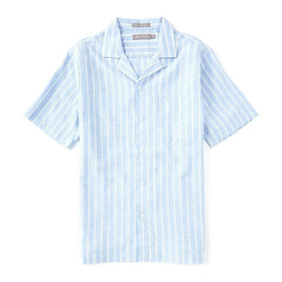 Buy 🥰 Daniel Cremieux Signature Linen Stripe Short-Sleeve Woven Camp 👕 Shirt Light Indigo ✔️